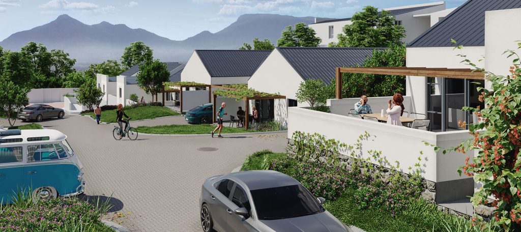 One such development is Fynbos Village, which recently broke ground. Situated on the slopes of Noordhoek Valley, Phase One of four is well underway, with the completion date in mid-2025.